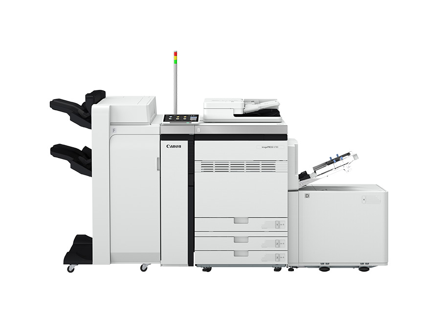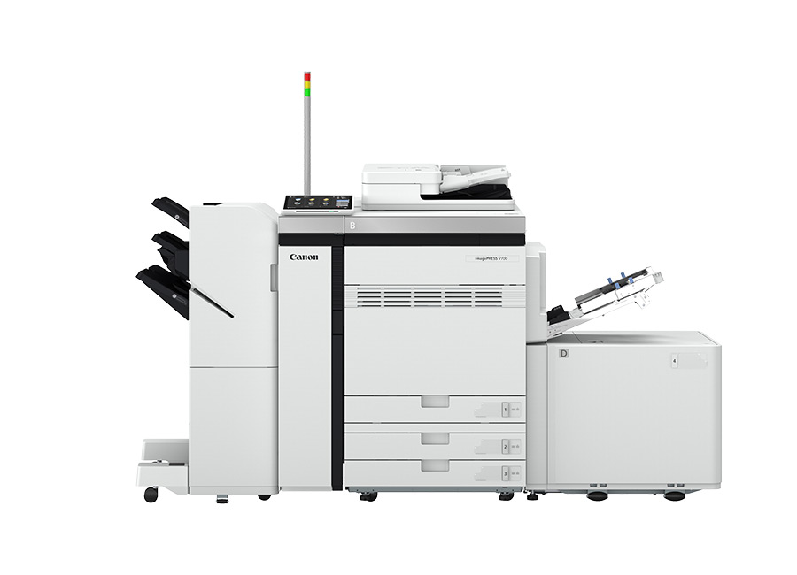 imagePRESS V700是佳能全新推出的輕中量級(jí)彩色數(shù)碼印刷機(jī),該機(jī)型延續(xù)了imagePRESS品牌久經(jīng)考驗(yàn)的質(zhì)量、生產(chǎn)力和多功能性,在上一代機(jī)型imagePRESS C710的基礎(chǔ)上,統(tǒng)一了主機(jī)與配件的外觀配色,新增了產(chǎn)能更高的Productivity生產(chǎn)力速度模式,并大幅提升了印刷前設(shè)備調(diào)整的自動(dòng)化水平,以更友好的設(shè)計(jì)幫助經(jīng)驗(yàn)不足的操作員快速輸出正確的色彩!