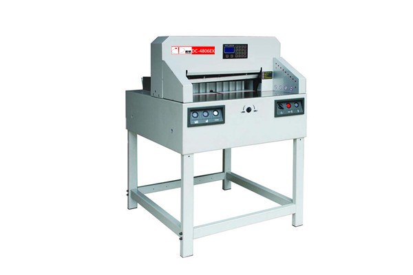 DC-4806EX /PX電動數控/程控切紙機,采用斜刀切紙專利技術,刀架間隙可調專利技術,提高裁切精度±0.2mm 離心式壓紙驅動專利技術,有效解決電動機器壓紙抱死。\n雙導桿推紙技術裝置,保證推紙精度,使用更平穩(wěn) 。紅外光柵安全保護電路設計,前紅外安全保護設計,后護罩防護,符合CE標準,操作更安全。 外觀專利設計,簡約設計,工藝精湛,適宜圖文快印辦公環(huán)境.